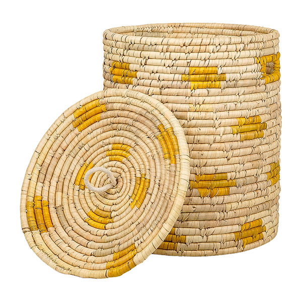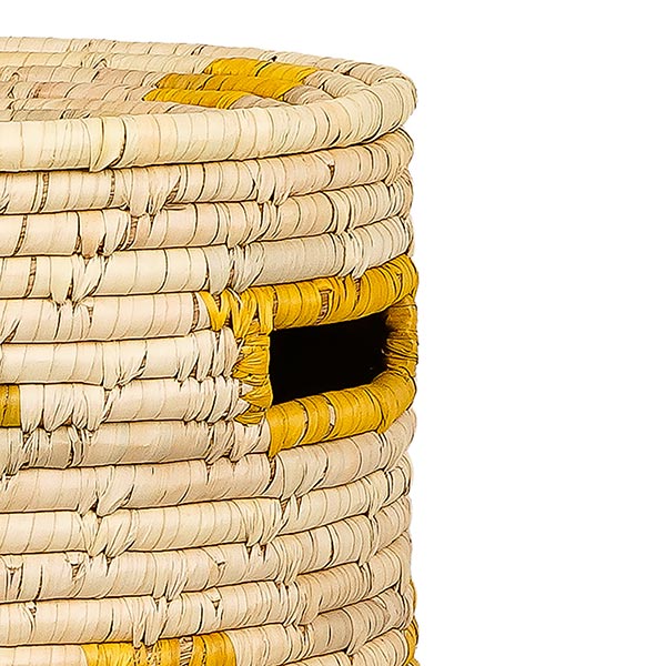 Dieser dekorative Wäschekorb aus natürlichem Kaisagras und recycelten Sari-Stoffen vereint Nachhaltigkeit und Design perfekt miteinander. Die Körbe aus Dhaka werden in Bangladesch von Hand gefertigt und mit viel Erfahrung sowie Hingabe von überwiegend weiblichen Kunsthandwerkerinnen geflochten. Das Korbflechten bietet diesen Frauen ein verlässliches Einkommen, das es ihnen ermöglicht, ihre Familien zu unterstützen und ein unabhängiges Leben zu führen.