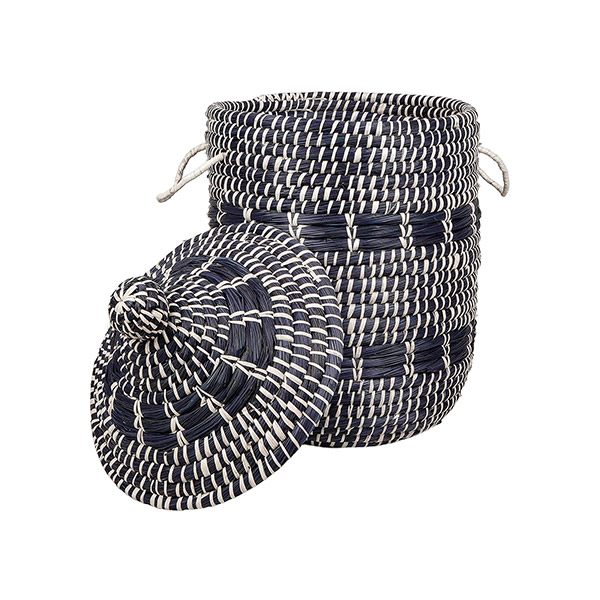 Dekorativer Wäschekorb aus natürlichem Kaisagras in einem stillvollen Design. Die Körbe von Dhaka werden in Bangladesh handgefertigt und mit jahrelanger Erfahrung von überwiegend weiblichen Handwerkenden in liebevoller Handarbeit geflochten. Somit bietet das Korbflechten ein sehr wichtiges, verlässliches Einkommen, welches es den Frauen ermöglicht, ihre Familien zu unterstützen und unabhängig zu sein. Das Ernten des Kaisagrases erfolgt sehr sorgsam, es werden ausschließlich die Bereiche oberhalb der Wurzel verwendet, um ein Nachwachsen der Pflanze zu gewährleisten.