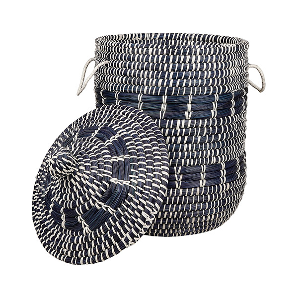 Dekorativer Wäschekorb aus natürlichem Kaisagras in einem stillvollen Design. Die Körbe von Dhaka werden in Bangladesh handgefertigt und mit jahrelanger Erfahrung von überwiegend weiblichen Handwerkenden in liebevoller Handarbeit geflochten. Somit bietet das Korbflechten ein sehr wichtiges, verlässliches Einkommen, welches es den Frauen ermöglicht, ihre Familien zu unterstützen und unabhängig zu sein. Das Ernten des Kaisagrases erfolgt sehr sorgsam, es werden ausschließlich die Bereiche oberhalb der Wurzel verwendet, um ein Nachwachsen der Pflanze zu gewährleisten.