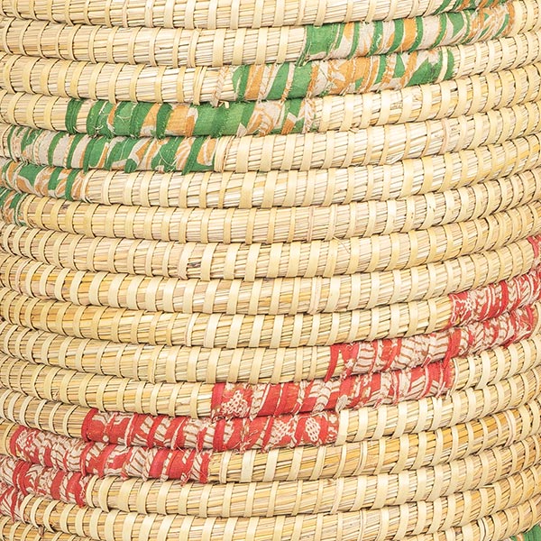 Material: Kaisagras, Palmblatt, Sari-Stoffe aus Baumwolle