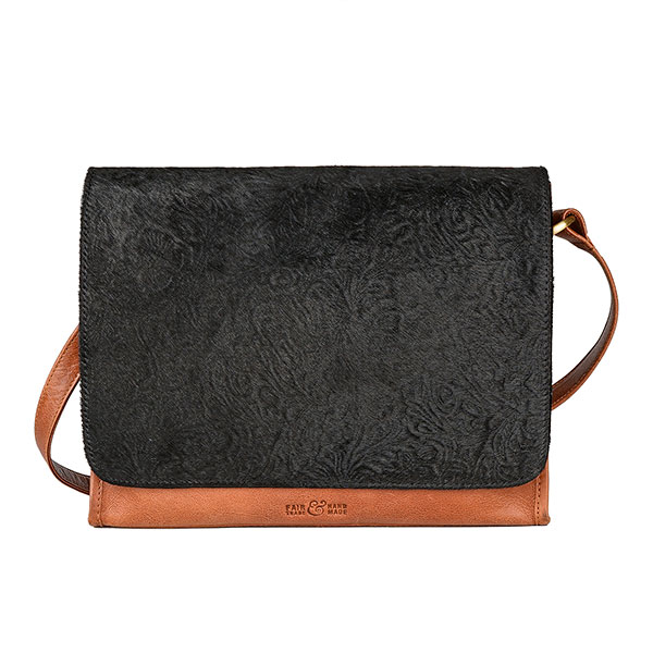 Material: Hochwertiges Rindsleder mit Haar aus teilvegetabiler Gerbung, gepägt; rückseitig mit grauem Canvas gefüttert