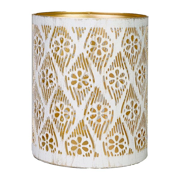 Dieses kleine Windlicht verspricht stimmungsvolle Beleuchtung. In der kalten Jahreszeit für eine kuschlig warme Atmosphäre im Haus, an lauen Sommernächten romantische Lichtquelle für Balkon und Terrasse. Zauberhafte Lichtwirkung durch das filigran durchbrochene Dekor im Metall, das in einem Ätzverfahren herausgearbeitet wird.