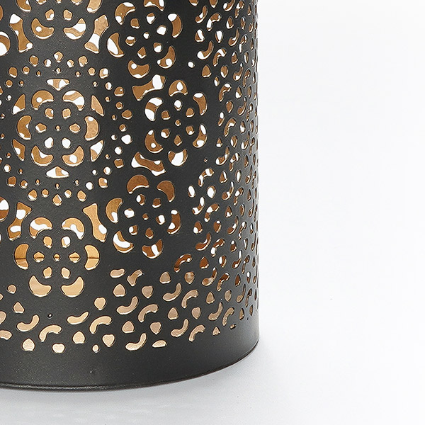Ob für eine kuschelig warme Atmosphäre im Haus oder an lauen Sommernächten als romantische Lichtquelle für Balkon und Terrasse. Zauberhafte Lichtwirkung und Farbspiel durch das filigran durchbrochene Flammendekor im Metall, das in einem Ätzverfahren herausgearbeitet wird.