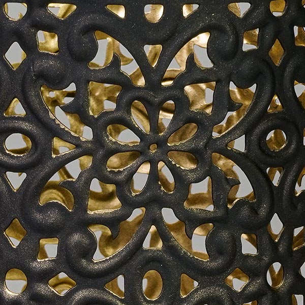 Ob für eine kuschelig warme Atmosphäre im Haus oder an lauen Sommernächten als romantische Lichtquelle für Balkon und Terrasse. Zauberhafte Lichtwirkung und Farbspiel durch das filigran durchbrochene Dekor im Metall, das in einem Ätzverfahren herausgearbeitet wird.