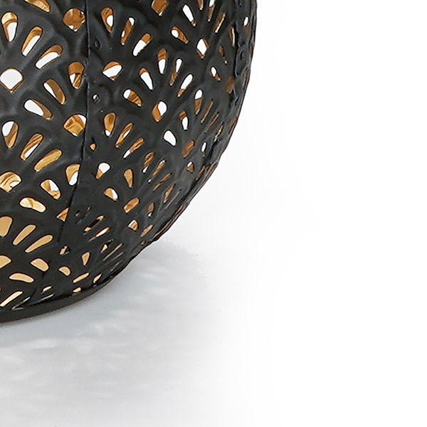 Ob für eine kuschelig warme Atmosphäre im Haus oder an lauen Sommernächten als romantische Lichtquelle für Balkon und Terrasse. Zauberhafte Lichtwirkung und Farbspiel durch das filigran durchbrochene Dekor im Metall, das in einem Ätzverfahren herausgearbeitet wird.