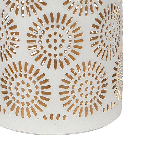 Ob für eine kuschelig warme Atmosphäre im Haus oder an lauen Sommernächten als romantische Lichtquelle für Balkon und Terrasse. Zauberhafte Lichtwirkung und Farbspiel durch das filigran durchbrochene Flammendekor im Metall.