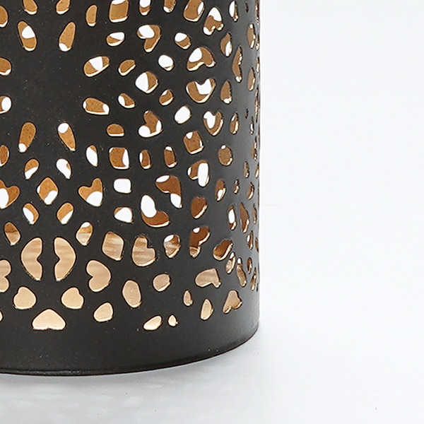 Ob für eine kuschelig warme Atmosphäre im Haus oder an lauen Sommernächten als romantische Lichtquelle für Balkon und Terrasse. Zauberhafte Lichtwirkung und Farbspiel durch das filigran durchbrochene Flammendekor im Metall, das in einem Ätzverfahren herausgearbeitet wird.