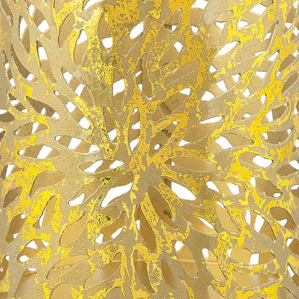 Zauberhafte Lichtwirkung und Farbspiel durch das filigran durchbrochene Dekor im Metall, das in einem Ätzverfahren herausgearbeitet wird.