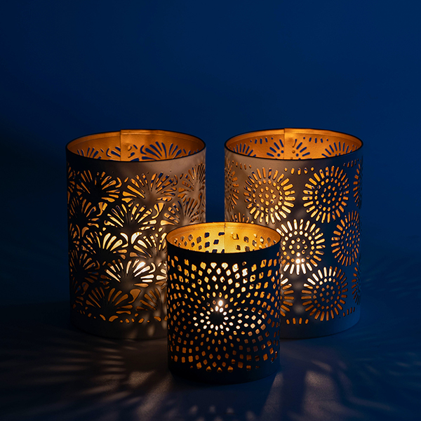 Erzeugnisse: Windlichter aus pulverbeschichteten Eisen- und Stahlblechen
