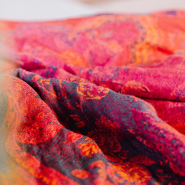 Erzeugnisse: Schals aus Seide, Baumwolle und Wolle