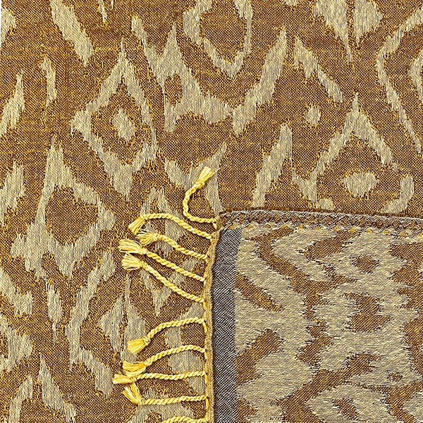 Dieser Webschal überzeugt durch sein zweifarbiges Ikat-Muster und seine angenehm dichte, wärmende Struktur. Die intensiven Farben verleihen dem Design zusätzliche Ausdruckskraft und machen den Schal zu einem echten Blickfang.