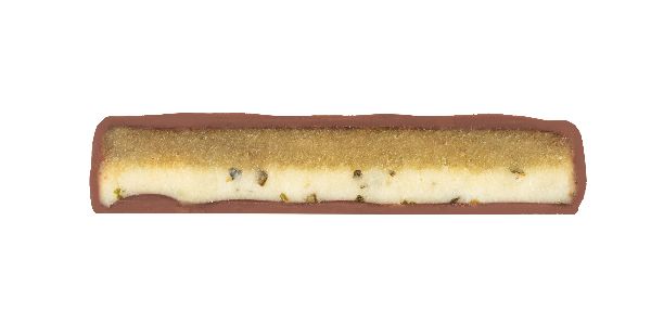Dunkle Milchschokolade 50% gefüllt mit Wein-Marzipan und Holunderblüten-Minz-Schicht.