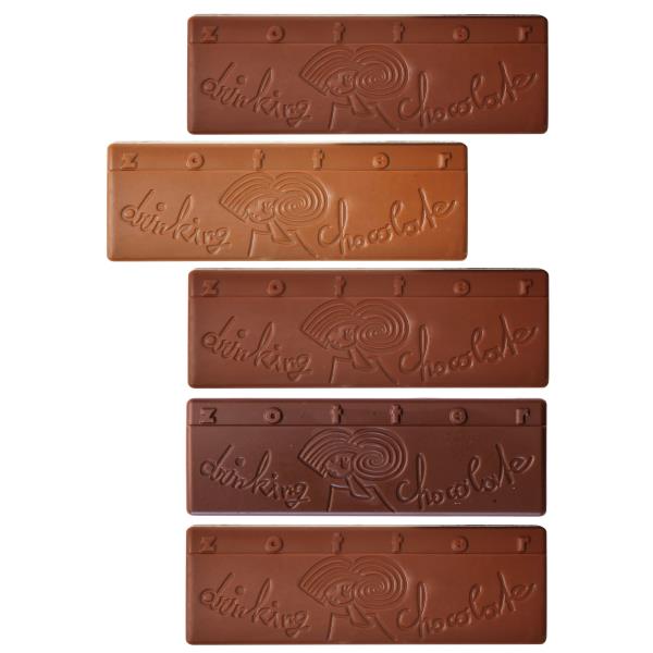 Trinkschokoladenriegel-Mischung°(5 Sorten): Götterdrink°, Edel-Mandel°, Nuss-Nougat°, Hanf-Drink°, Cashew-Karamell°