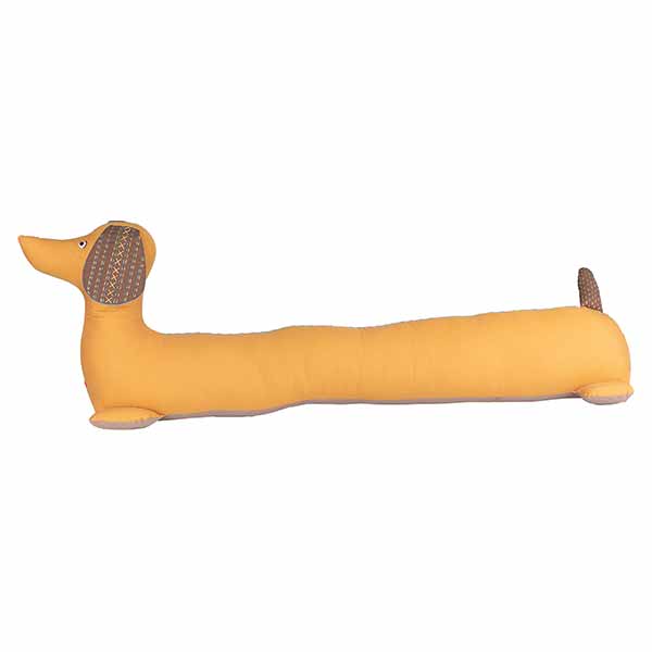 Zugluftstopper Dackel Woody; liebt es sich schick zu kleiden; Kommt an jede Keksdose wenn er sich auf seine Hinterbeine stellt; Geht leidenschaftlich gerne auf den Trödelmarkt; Hat mal einen vergrabenen Knochen gefunden.